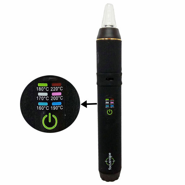 - Six temperature settings with quick heat up time: simply turn it on and select your preferred setting. There are six presets: 160ºC, 170ºC, 180ºC, 190ºC, 200ºC, and 220ºC. The Focus Vape heats up in approximately 20 seconds.
